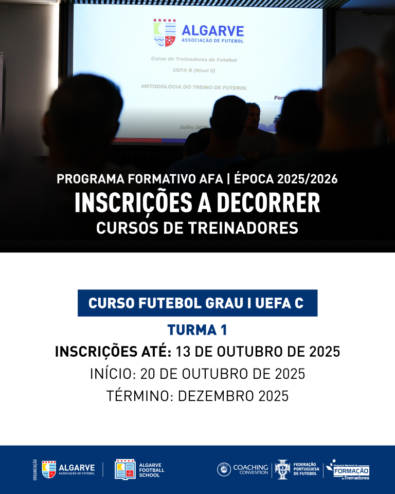 Notícias Curso de Treinadores de Futebol Grau I UEFA C – Turma de Faro: Inscrições abertas até 6 de janeiro de 2025