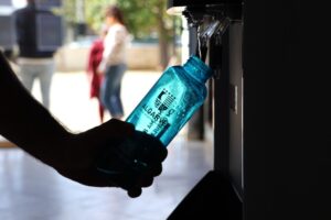 Outra melhoria foi a substituição de uma máquina de água com garrafões por máquinas de água da rede filtrada, eliminando o uso de grandes quantidades de plástico.