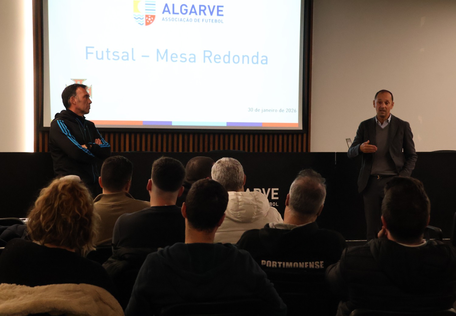 A sessão contou com a abertura do Presidente da Direção da AFA, João Pedro Gomes, e com apresentações de Luís Brites, Diretor Técnico Regional, de Pedro Guerreiro, Técnico Regional, e do convidado Paulo Cunha, Coordenador do Portimonense Sporting Clube.