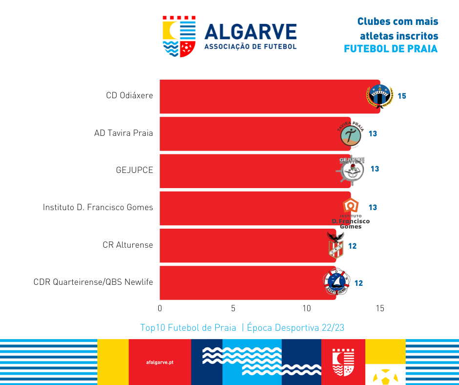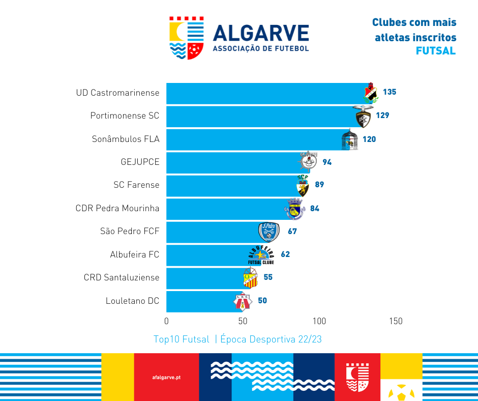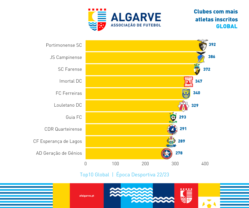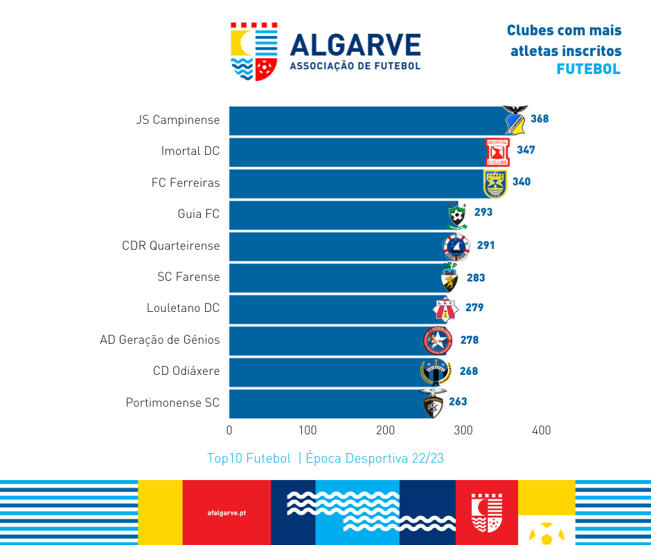 Abaixo pode consultar a lista dos 10 clubes com mais atletas inscritos na temporada 2022/2023.