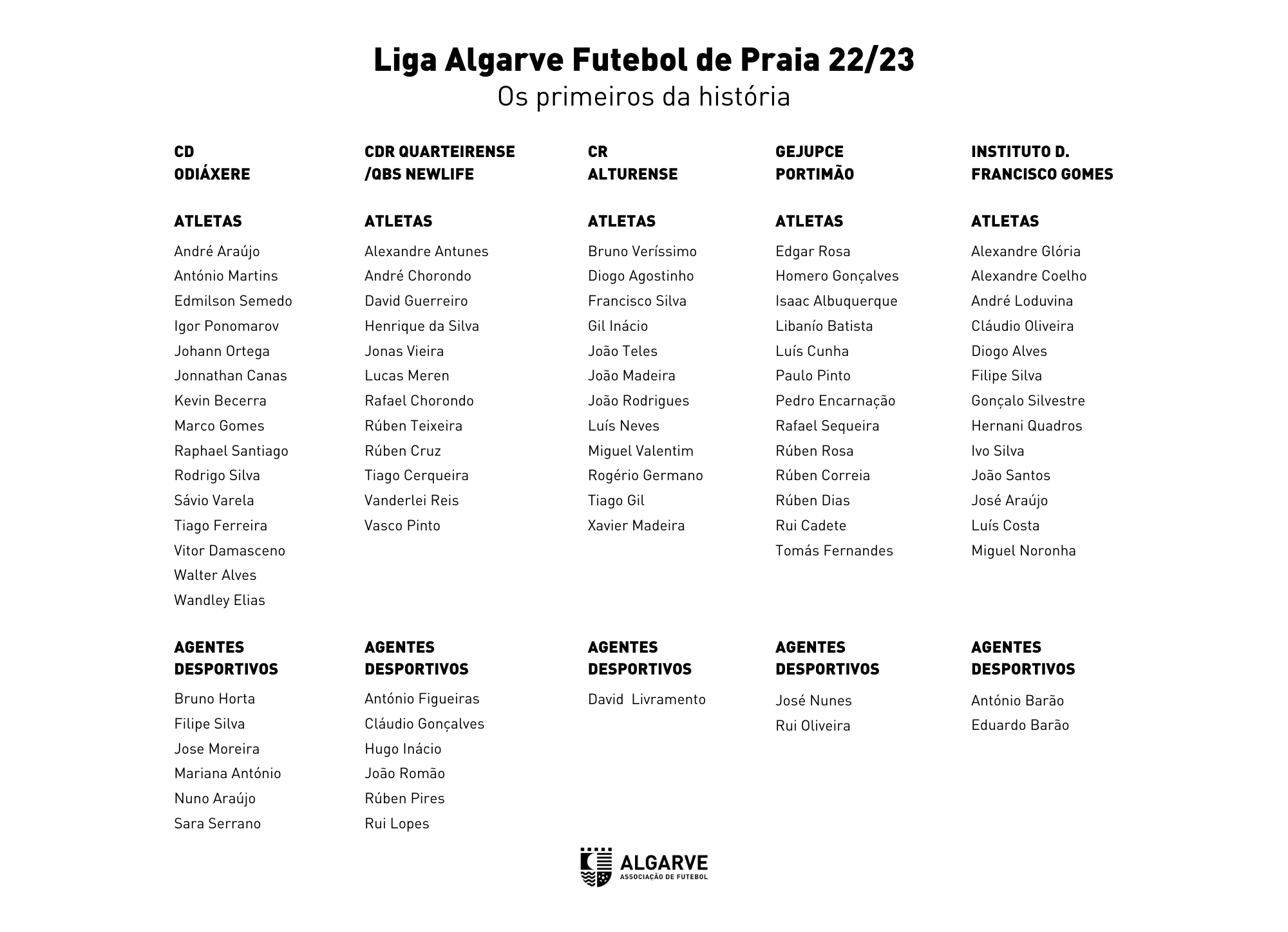 CD Odiáxere, CDR Quarteirense/QBS Newlife, CR Alturense, GEJUPCE e Instituto D. Francisco Gomes, emblemas pioneiros que ficam para sempre na história da AFA e da modalidade na região, fizeram-se representar com presidentes, diretores, treinadores e atletas para debater o presente e o futuro do campeonato, nomeadamente ao nível de estratégias de desenvolvimento e de questões técnicas e logísticas relacionadas com a prova.