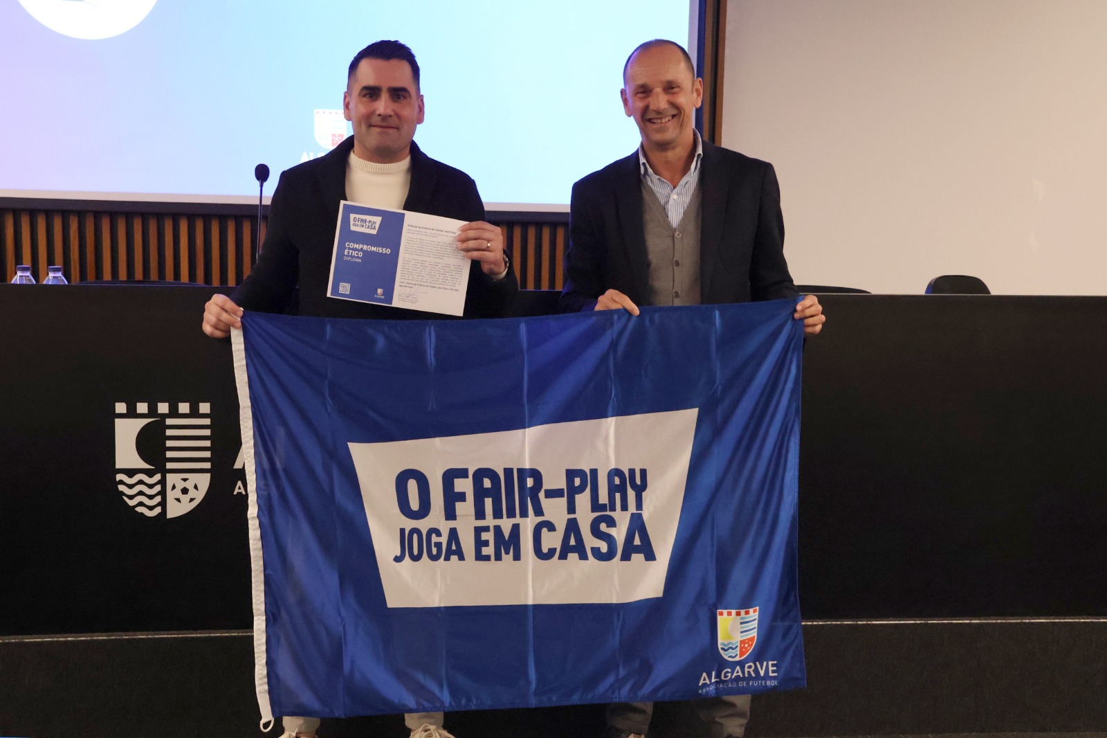 Os três Núcleos de Árbitros do Algarve, em representação de todos os árbitros e agentes de arbitragem da região, já aderiram à campanha “O fair-play joga em casa”, na presença do Vice-Presidente do Conselho de Arbitragem (CA) da Federação Portuguesa de Futebol, Nuno Almeida, do Presidente da Associação Portuguesa de Árbitros de Futebol, José Borges, e do Presidente do CA da Associação de Futebol do Algarve (AFA), João Ferreira, entre outros elementos do Órgão. A cerimónia decorreu esta semana no auditório da AFA.