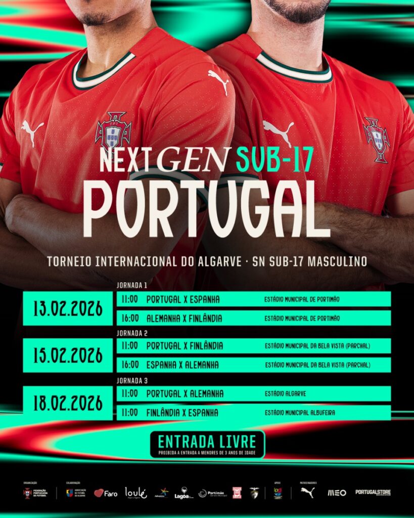 Entre esta sexta e a próxima quarta-feira, 13 a 18 de fevereiro, o escalão masculino de Sub17 da Seleção Nacional vai participar no Torneio Internacional do Algarve. Espanha, Finlândia e Alemanha vão ser os adversários. As partidas terão lugar no Estádio Municipal de Portimão, no Estádio Municipal da Bela Vista (Parchal), no Estádio Algarve e no Estádio Municipal de Albufeira.